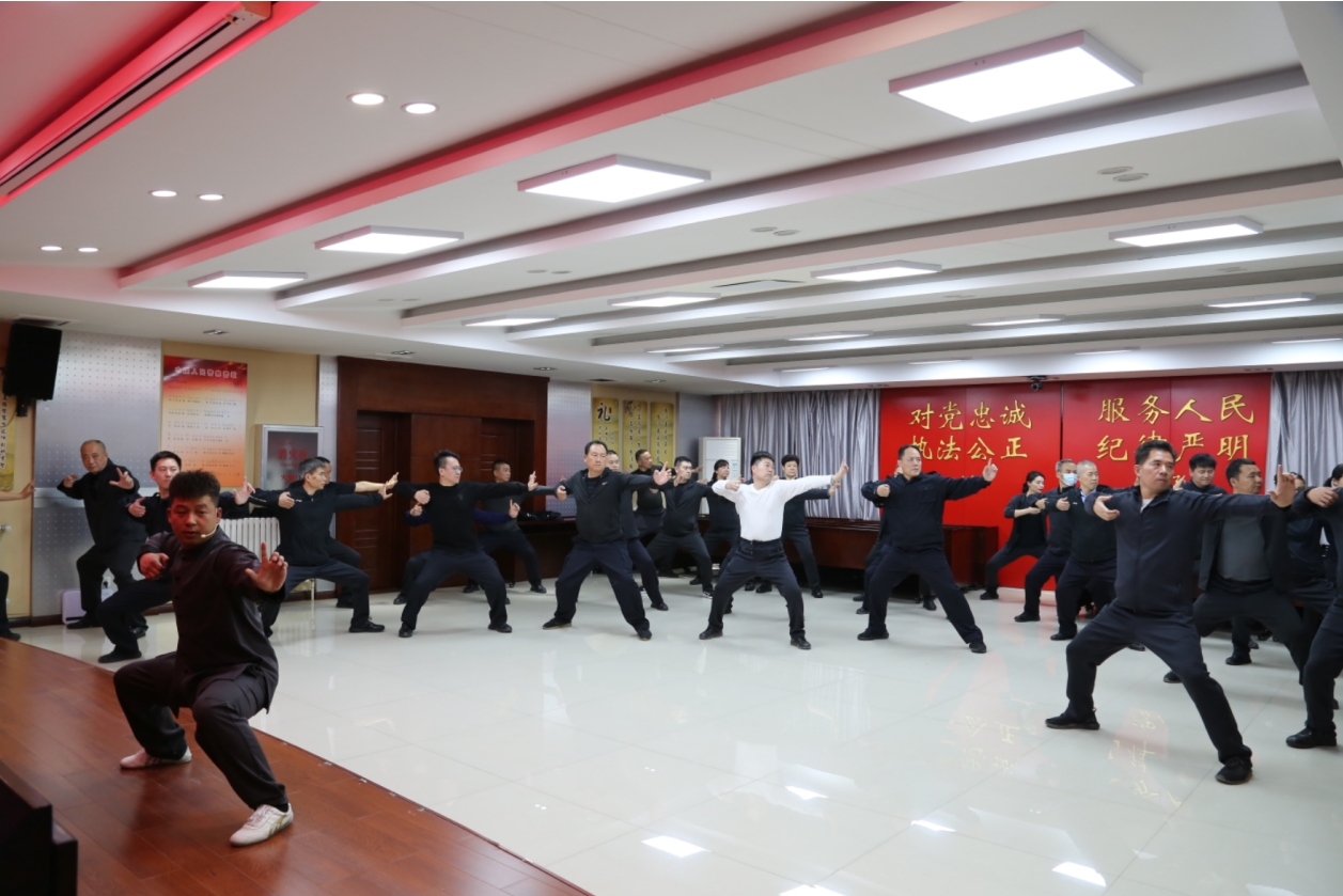 为进一步推进公安局“党建家文化”建设,丰富警营文化生活,增强民警身体素质,缓解工作压力,营造积极向上、团结和谐的警营氛围,3月13日起,公安局组织全体民警开展“八段锦”健身活动。