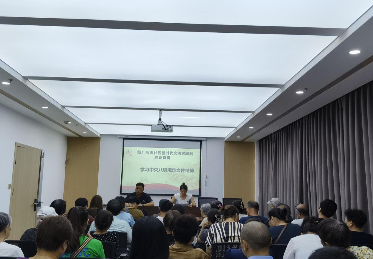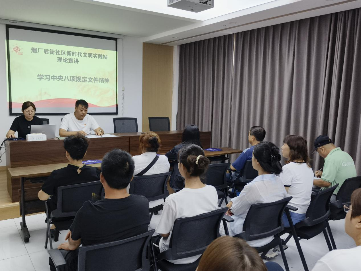2025年8月29日,南关街街道烟厂后街社区组织召开深入贯彻中央八项规定精神学习教育专题宣讲会。
